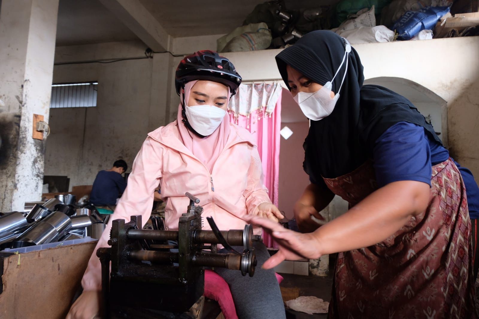 Sidoarjo, (pawartajatim.com) – Ketua TP-PKK Kabupaten Sidoarjo Hj Sa’adah Muhdlor (Ning Sasha) mengunjungi tempat sentra Usaha Mikro Kecil Menengah/UMKM pembuatan peralatan Dapur seperti Panci dan Dandang. Letaknya di Desa Kebakalan Kecamatan Porong.