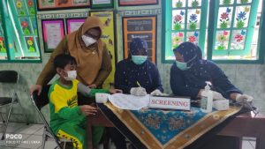 Terbukti kegiatan vaksinasi yang dilaksanakan hari ini merupakan pemberian vaksinasi dosis kedua dengan sasaran sebanyak 225 anak dengan jenis Sinovac. Dengan didampingi oleh Kepala Desa Sukomulyo Subiyanto, Sekdes Lilik Kusmiatin dan Kepala Sekolah MI Al Maarif Nur Hayati, Bu Min berkeliling menyapa dan memberikan semangat kepada anak-anak yang divaksin.