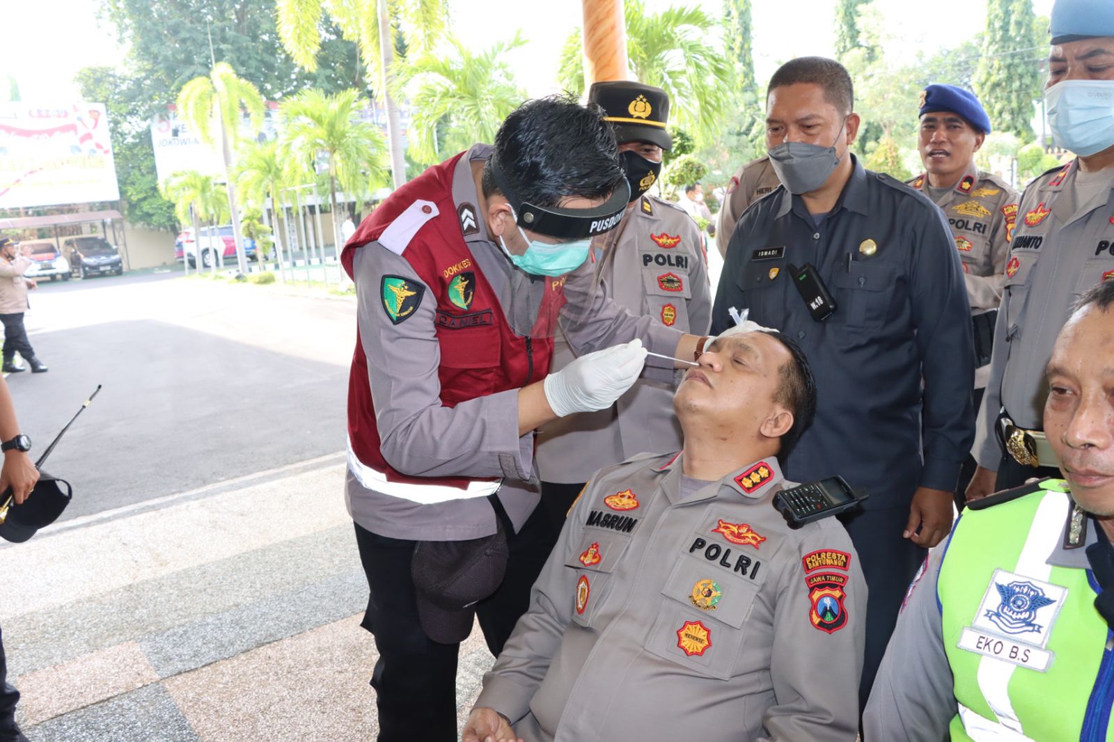 Banyuwangi, (pawartajatim.com) – Mengantipasi terpapar Covid Omicorn, seluruh personel Polresta Banyuwangi menjalani uji swab, Senin (31/1) pagi. Mereka mendapatkan tracing usai apel pagi. Mulai Kapolresta hingga anggota biasa tidak ada yang luput dari pemeriksaan.